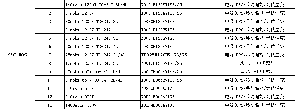 XD025B120BV1S3/S5   25mohm 1200V TO-247 3L/4L  電源(UPS/移動儲能/光伏逆變)