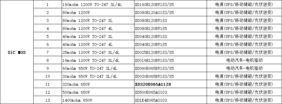 XD320B065AG1Z8 320mohm 650V 電源(UPS/移動(dòng)儲(chǔ)能/光伏逆變)