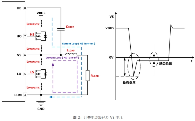 當控制信號HIN為低電平,LIN為高電平時,高側(cè)功率器件關(guān)閉,低側(cè)功率器件導(dǎo)通,電流從負載返回輸入端。