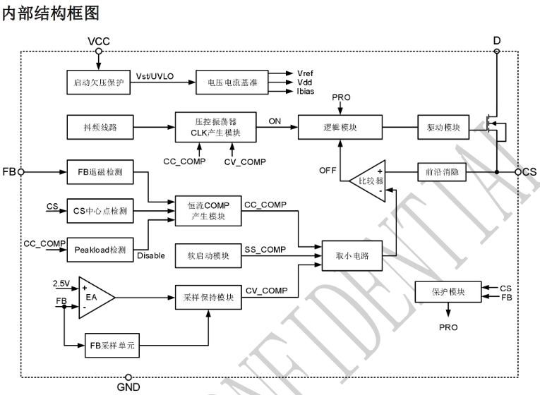 驅動電路:用于驅動內置的MOS管,使其能夠按照控制邏輯電路的指令準確地導通和截止。驅動電路的設計考慮到了MOS管的開關特性,確保了開關過程的快速性和可靠性,減少了開關損耗。