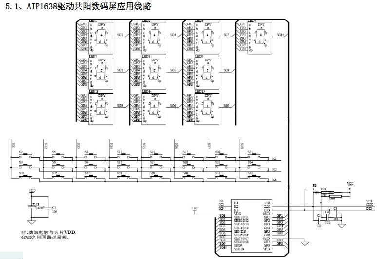AIP1638內(nèi)置8×3bit的鍵盤掃描功能,能夠?qū)崿F(xiàn)對鍵盤輸入的高效檢測。這一功能使得AIP1638不僅適用于顯示控制,還可以作為鍵盤輸入接口,實(shí)現(xiàn)人機(jī)交互功能,大大提高了芯片的實(shí)用性。