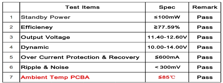 在過流保護(hù)及恢復(fù)測試中,其過流保護(hù)及恢復(fù)電流為≤600mA,能夠有效保護(hù)電源和自動卷發(fā)器的安全。在紋波和噪聲測試中,其紋波和噪聲<300mV,能夠保證電源輸出的穩(wěn)定性。在環(huán)境溫度測試中,其環(huán)境溫度 PCBA≤85℃,能夠在正常的工作溫度范圍內(nèi)穩(wěn)定運(yùn)行。