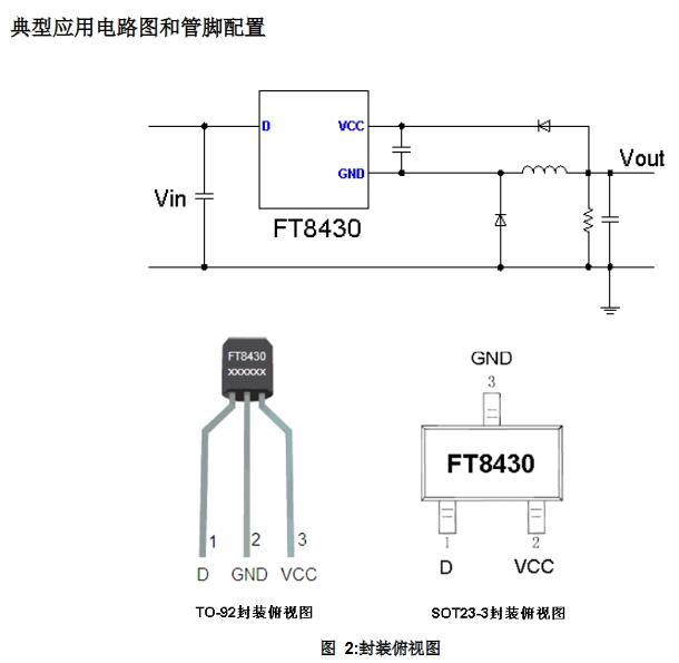FT8430的典型應(yīng)用電路非常簡單,以下是一個5V輸出的典型應(yīng)用電路圖: