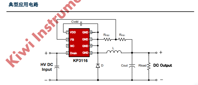 KP3116 是一款高性能低成本 PWM 控制功率開關,適用于離線式小功率降壓型應用場合,外圍電路簡單、器件個數(shù)少。同時產(chǎn)品內置高耐壓 MOSFET 可提高系統(tǒng)浪涌耐受能力。