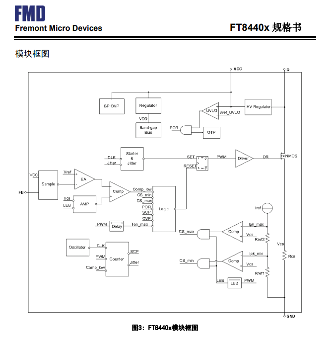 FT8440E采用超高壓工藝,內部集成高壓啟動電路,高壓功率開關,以及電流采樣電阻,減少了外部元器件,極大地簡化了系統(tǒng)應用。內置的頻率抖動和軟驅動設計能有效提高EMI性能。