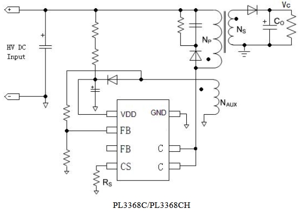 PL3368C 同時具有多種保護功能:逐周期峰值電流檢測、VDD 欠壓/過壓保護、輸出過壓保護、輸出短路保護和過溫保護等。