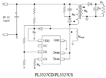 復合模式的應(yīng)用使得芯片能夠?qū)崿F(xiàn)低靜態(tài)功耗、低音頻噪音、高效率。而且高集成的功率 MOSFET 能夠降低外部 PCB的面積以及系統(tǒng)的成本。PL3327C 同時具有多種保護功能:逐周期峰值電流檢測、欠壓保護、過壓保護等。