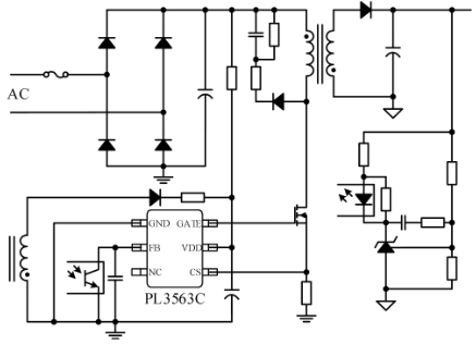 PL3563C 是一款低成本、高性能的電流模PWM控制芯片,其優(yōu)異的性能可滿足小功率開關(guān)電源的低功耗要求。芯片的啟動電流典型值僅5uA,可減小啟動電路損耗;而較低的工作電流也可以提高系統(tǒng)的效率;芯片內(nèi)置的“無噪音綠色模式”同樣能夠提高系統(tǒng)的效率,同時這種綠色模式能使開關(guān)電源滿足嚴(yán)格的能源損耗要求。