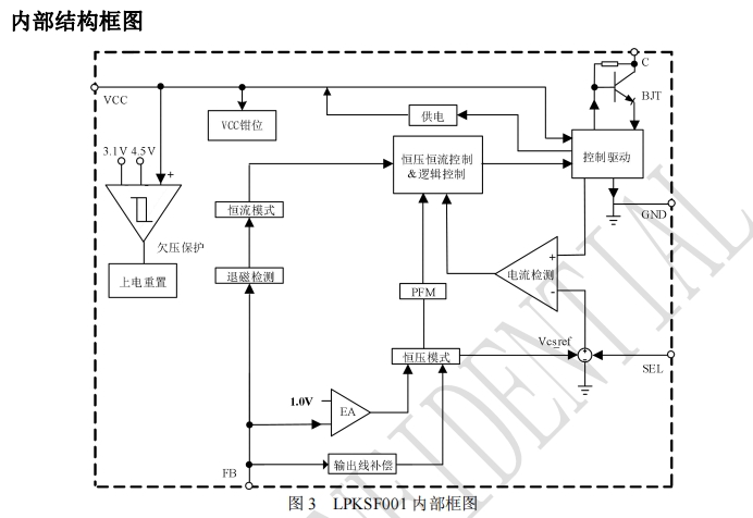 自供電技術(shù):LPKSF001采用自供電技術(shù),取消了輔助繞組VCC供電二極管,減少了外部元件數(shù)量,提高了電路的可靠性。