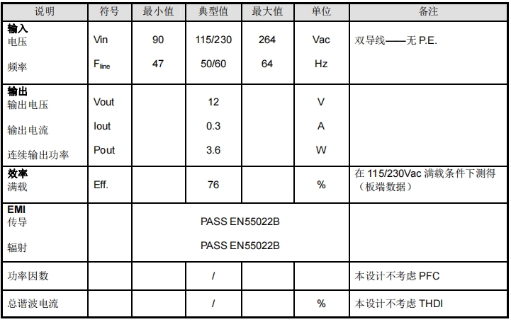 下表給出的是設(shè)計(jì)的最低可接受指標(biāo),實(shí)際性能在后續(xù)的測(cè)試結(jié)果部分給出。