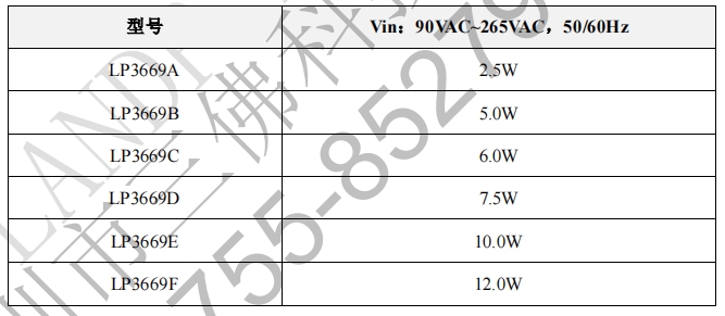 在電源設計領域,選擇合適的控制芯片對于確保電源轉換效率和穩定性至關重要。LP3669是一款高性能的雙繞組原邊反饋控制芯片,廣泛應用于AC-DC轉換器設計中。該芯片支持90VAC至265VAC的輸入電壓范圍,并能在50/60Hz的頻率下工作。LP3669系列提供了多種型號,每種型號對應不同的輸出功率,后綴從A到F,分別對應2.5W至12W的輸出功率。本文將探討這些不同后綴型號的LP3669芯片是否可互換使用,以及它們在電源設計中的應用。