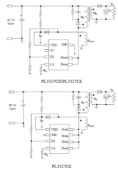 盡管兩款芯片都適用于小于18W的AC/DC反激式開關(guān)電源,但它們的封裝差異可能會影響它們在特定應(yīng)用中的適用性。例如,PL3327CE的SOP8封裝可能更適合于對空間要求較高的便攜式設(shè)備,如手機充電器和數(shù)碼相機充電器。而PL3327CD的DIP7封裝可能更適合于對成本敏感且空間要求不那么嚴(yán)格的應(yīng)用,如一些小型電源適配器。